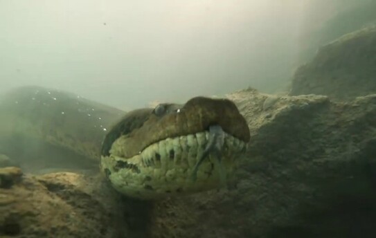 Brazilia, faţă în faţă cu o anaconda: şarpele înoată la doi paşi de scafandri [video]