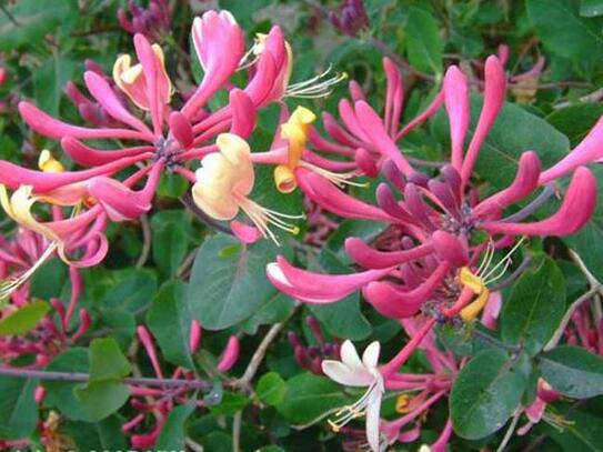 Varietatea Lonicera Belgica a caprifoiului este o plantă căţărătoare care la maturitate atinge o înălţime de 10 metri. Caprifoiul roz este ideal pentru împodobirea zidurilor, gardurilor înalte şi a pergolelor.