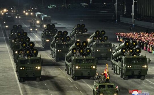 Pe măsură ce spectacolul a atins punctul culminant, armata a lansat ceea ce analiştii au afirmat că păreau noi variante de rachete balistice cu rază scurtă de acţiune cu combustibil solid - care se pot desfăşura mai rapid decât versiunile cu combustibil lichid - şi patru rachete balistice lansate de submarine din clasa Pukguksong (SLBM).
