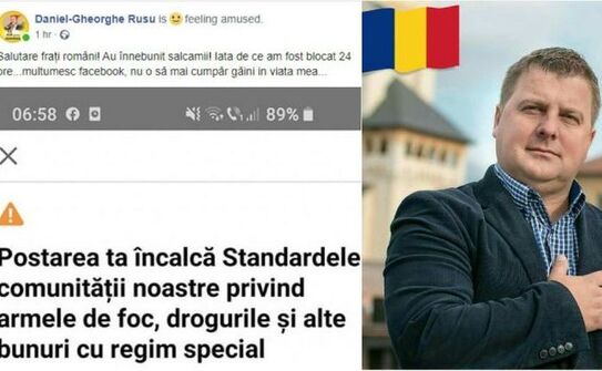 Daniel Gheorghe Rusu, primarul comunei Şpring, judeţul Alba, a fost blocat pe Facebook timp de 24 de ore pentru o postare care aparent ar fi încălcat “standardele comunităţii noastre privind armele de foc, drogurile şi alte bunuri cu regim special”, relatează publicaţia alba24.ro.