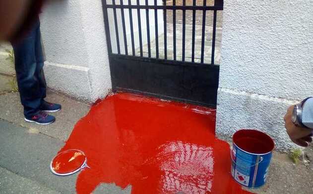 Protest inedit la Secţia specială pentru investigarea magistraţilor: intrarea din faţă a instituţiei a fost, în mod simbolic, umplută de "sânge" (vopsea roşie).