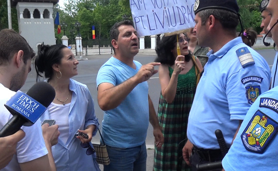 O persoană mai agresivă s-a precipitat spre cameramanul Epoch Times, părând că vrea să lovească peste cameră, fiind oprit însă de un jandarm. O doamnă în vârstă a împins reportera Epoch Times şi, în genere, echipei noastre i s-au adresat cuvinte jignitoare şi acuzaţii nefondate precum faptul că ar fi haştagişti, plătiţi de Soros etc. Persoana care a fost agresivă cu cameramanul a vrut să-şi dea pantalonii jos şi să ne arate fundul, dar a intervenit un om în uniformă.