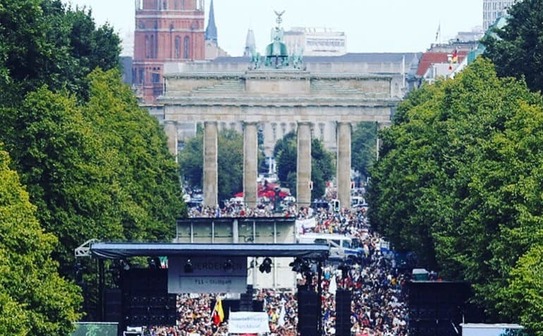 La protest s-au scandat lozinci precum"Libertate!" sau "Cea mai mare teorie a conspiraţiei este pandemia de coronavirus!". Motto-ul acţiunii de protest a fost "Sfârşitul pandemiei - ziua libertăţii". "Ziua libetăţii" este şi titlul unui film de propagandă nazist al regizoarei Leni Riefenstahl despre Congresul partidului NSDAP din 1935.