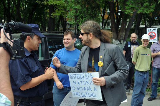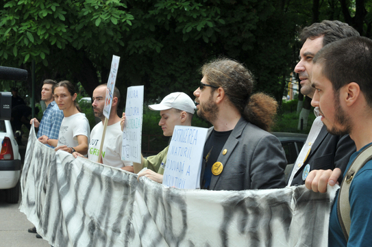 ”Aţi observat care este disponibilitatea unui preşedinte al unei instituţii publice. Astăzi am strâns câteva persoane din partea Partidului Verde şi al Partidului Ecologist şi din partea societăţii civile pentru a transmite un mesaj autorităţilor. În mod întâmplător preşedintele ANPM a coborât printre noi (pentru că protestul avea loc lângă scările de la intrarea principală a instituţiei - n.r.) însă a refuzat orice fel de dialog”, a precizat Remus Cernea.