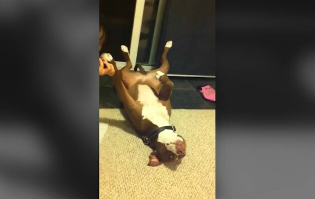 Momentul în care câinele simulează un leşin (screenshot tramite TWITTER: @rashona)