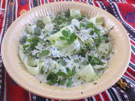 Salata de castraveţi cu iarbă grasă, iaurt şi mentă - răcoroasă şi foarte sănătoasă