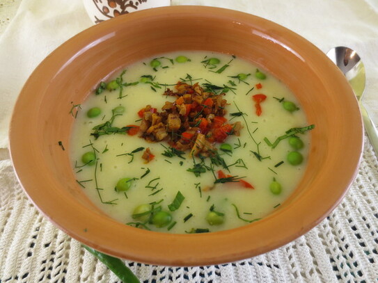Supa cremă de dovlecei cu cartofi şi mazăre - un deliciu