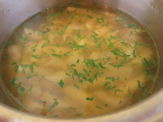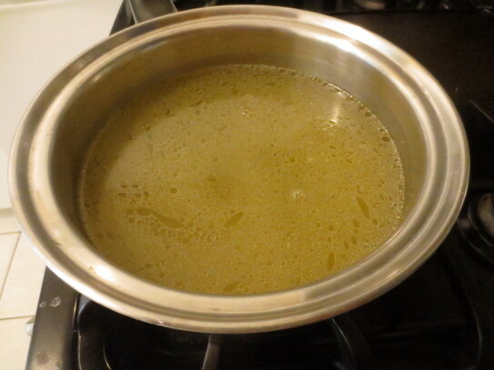 Când este gata, supa se strecoară şi se pune într-o oală potrivită cu cantitatea de lichid ce a rămas prin fierbere.