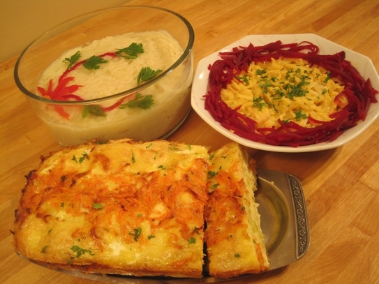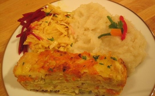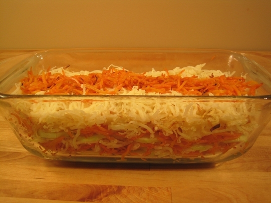 Pentru gusturile mai rafinate, stratul de ţelină se poate combina cu morcov ras şi prăjit. Dacă doriţi, puteţi de asemenea intercala şi un strat de dovlecel tăiat în rondele. Acesta va absorbi ca un burete excesul de grăsime resultat din prăjirea ţelinei.