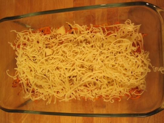 Se pune la cuptor la 180 grade Celsius. După o jumătate de oră, mâncarea este rumenită şi gata de servit.
