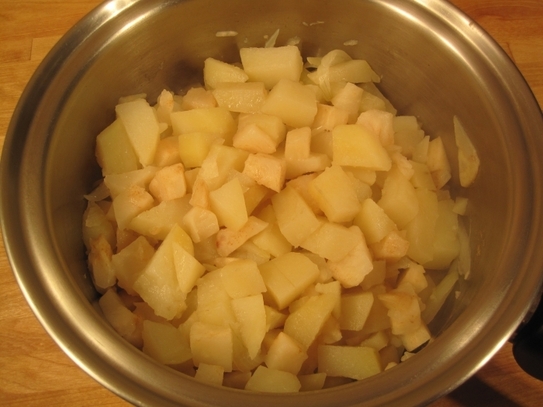 Într-un vas de sticlă care merge la foc se pune o bucată de unt peste care se rade o bucată de brânză din care-ţi place, sau din care ai. Peste stratul acesta se pune un strat de ţelină rumenită, pe urmă iar brânză rasă (parmezan, e cea mai indicată) şi iar ţelină, avand grija ca ultimul strat să fie de brânză. Peste acest ultim strat, dacă vrei ca mâncarea să prindă o crustă frumoasă, torni câteva ouă întregi bătute în prealabil cu furculiţa.