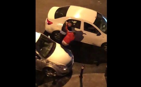 În imaginile respective, surprinse de la etajul unui bloc din Bucureşti, se poate vedea cum poliţistul în cauză, purtând o mască de protecţie, loveşte cu duritate un bărbat. La scurt timp intervine un coleg de-al său, dar chiar şi atunci poliţistul nu renunţă la violenţă. În cele din urmă, poliţistul îşi îndreaptă atenţia către un al doilea bărbat şi fuge după el. Cel de-al doilea bărbat este auzit strigând de frică pe stradă dar, în cele din urmă, este prins după ce la faţa locului mai ajunge un echipaj de poliţie.