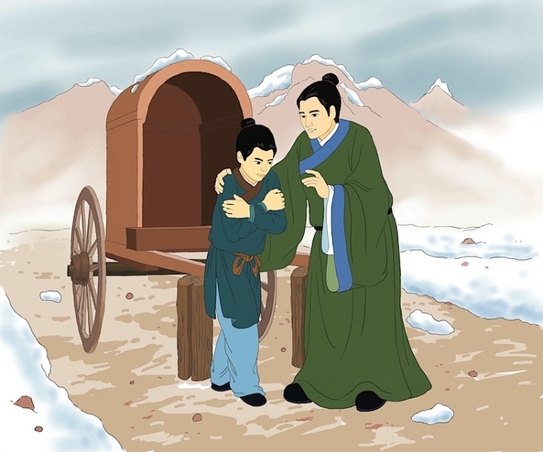 Li Xiuying îşi spuse: „Bebe, atât de liniştit dormi! Un vânt rece vine pe fereastră, lovind trupul precum gheaţa, pătrunzându-te până la os. Soţul a luat doi copii până la Satul de Est. Cu o asemenea ninsoare puternică, trebuie să fie greu de călătorit. Totuşi, Yingge poartă bumbac. Cu toate astea, tot îmi fac griji pentru el. Puiul meu, cum poate suporta frigul? De-abia aştept sa să întoarcă!”