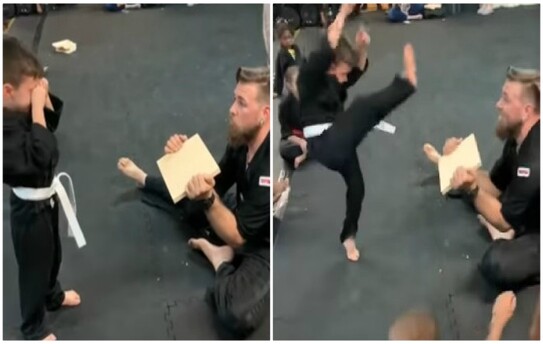 Voinţa unui micuţ karateka îi emoţionează pe profesor şi coechipierii săi [video]