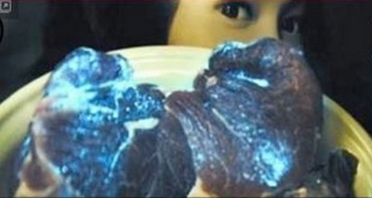 10. Carnea "Avatar". Locuitorii din Shanghai cumpără de la unele pieţe alimentare carne de porc de casă, care în întuneric luminează în albastru, deoarece este contaminată cu o bacterie fosforescentă. Acest lucru o face foarte asemănătoare cu personajele din filmul"Avatar".