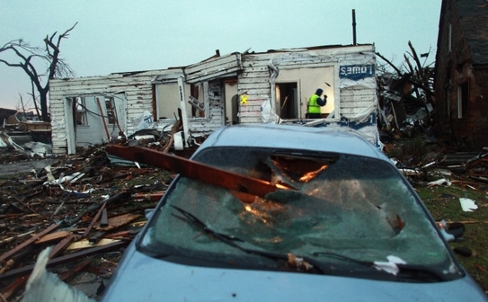 Tornada de duminică s-a produs într-o zonă dens populată din oraş, devastând locuinţe şi magazine, un liceu şi provocând pagube semnificative unuia dintre cele două spitale din oraş. Zone întregi din oraşul cu circa 50.000 de locuitori sunt de nerecunoscut, construcţiile fiind făcute una cu pământul.