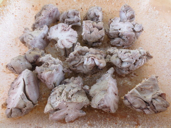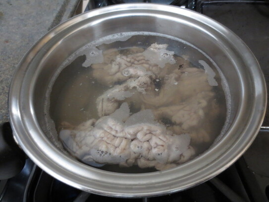 Creierul se spală, apoi se pune într-un castron cu apă rece. Se adaugă o lingură de oţet şi se lasă să stea în apă rece cam o oră, ca să iasă tot sângele din el.