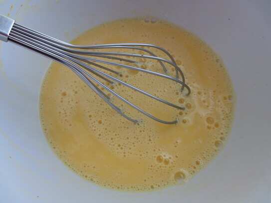 Într-un castron mediu, se sparg cele 8 ouă şi se bat uşor cu un tel. Se adaugă două linguri de lapte şi câte o jumătate de linguriţă de sare şi piper.