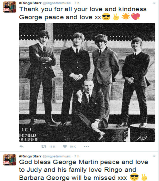 George Martin - producător muzical cunoscut sub numele de "al cincilea Beatles", pentru rolul său în trupa britanică - a murit la vârsta de 90 de ani, anunţă bateristul Ringo Starr, prin intermediul contului său de Twitter.