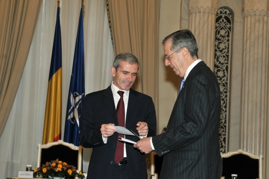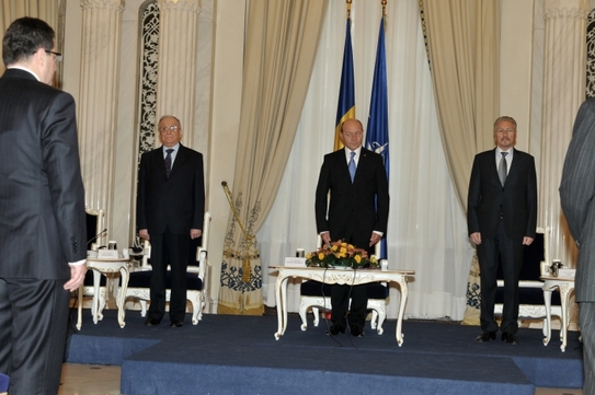 Tot miercuri, cu prilejul aniversării a 10 ani de la invitarea României pentru aderare la Organizaţia Tratatului Atlanticului de Nord (NATO), Traian Băsescu, a acordat decoraţii ofiţerilor superiori de armată, în semn de înaltă apreciere pentru devotamentul şi profesionalismul de care au dat dovadă de-a lungul întregii lor cariere şi care au contribuit la procesul de reformare a instituţiilor cu atribuţii în domeniul siguranţei naţionale, la întărirea prestigiului Armatei României în raport cu partenerii din cadrul Alianţei.