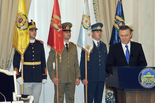 Şeful statului a acordat Ordinul Naţional „Pentru Merit” - în grad de Cavaler, cu însemn pentru militari, domnului general-maior Strîmbeanu Gheorghe Victor, Ordinul „Virtutea Militară” - în grad de Comandor, cu însemn pentru militari, domnului colonel Ungureanu Dumitru Radu, Ordinul „Virtutea Maritimă” - în grad de Ofiţer, cu însemn pentru militari, domnului comandor Cătăneanu Dumitru Valentin-Vicenţiu, Ordinul „Virtutea Militară” - în grad de Cavaler, cu însemn pentru militari domnului general de brigadă Ciucă Gheorghe Nicolae-Ionel, domnului general de brigadă Grecu Petre Dan-Florin şi domnului colonel Mândrescu Vasile Mircea, precum şi Ordinul „Virtutea Aeronautică” - în grad de Cavaler, cu însemn pentru militari domnului comandor Duţă Petre Vasile şi domnului colonel Maxim Dimitrie Gheorghe.