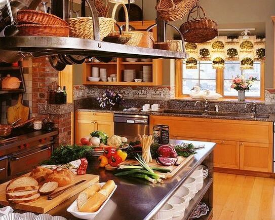 În ceea ce priveşte restul bucătăriei, o puteţi amenaja ca pentru o locuinţă modernă. Puteţi utiliza chiar linii moderne curate, important este să folosiţi accesorii cu detalii de tip rustic, cum ar fi draperiile, naproanele, şervetele, faţă de masă şi ustensilele de bucătărie.