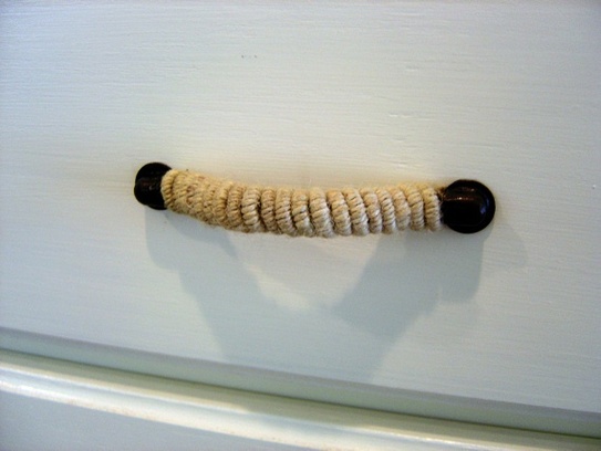 Un mod simplu, dar de mare efect, pentru a da un aspect rustic mobilei, este să înfăşuraţi în sfoară mânerele de la dulapuri (foto 15). Sfoara este foarte ieftină şi puteţi face multe lucruri drăguţe cu ea, atunci când vă apucaţi de decorat.