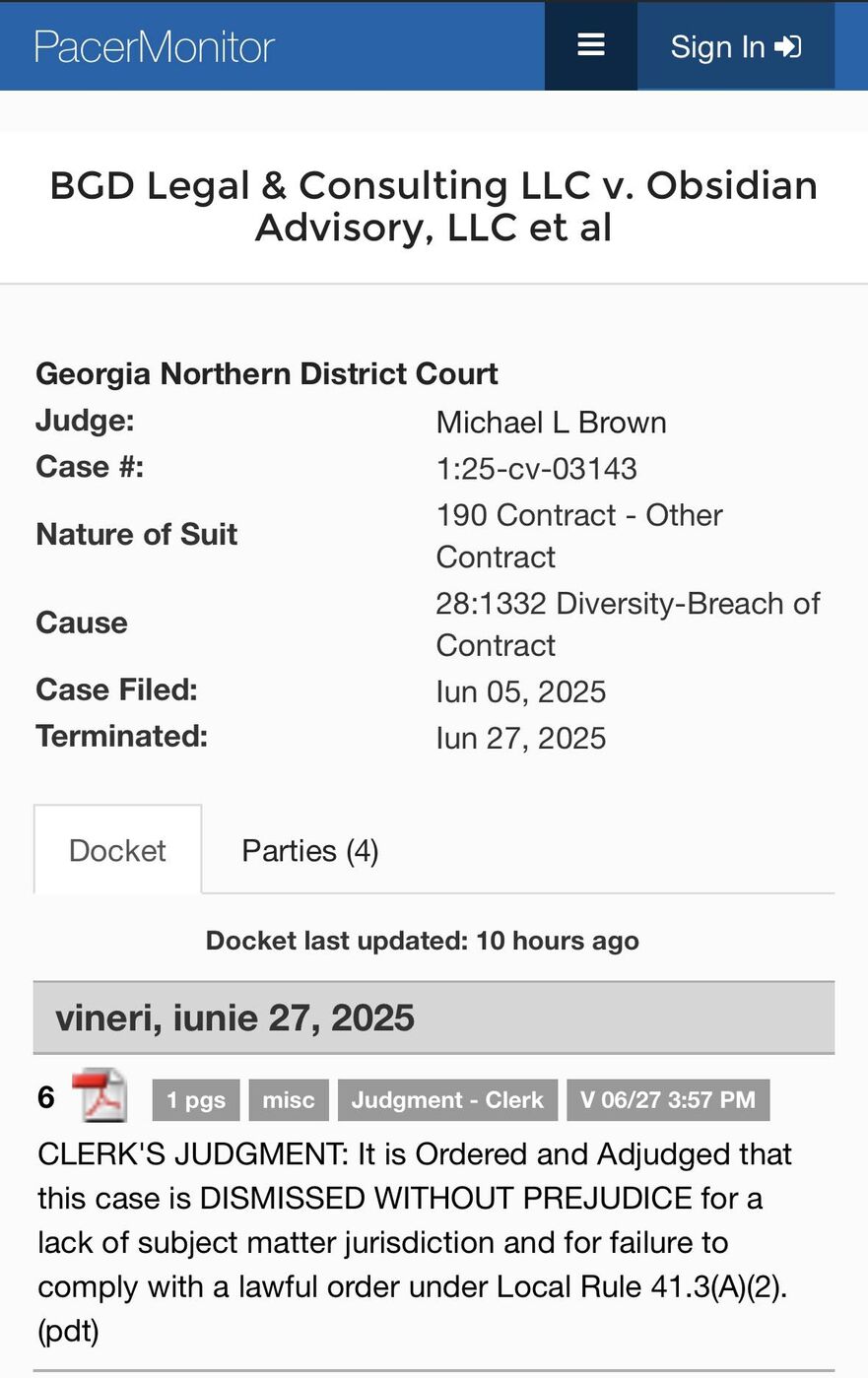 Analistul a atras atenţia că acum şi BGD Legal & Consulting LLC a dat în judecată o altă companie, Obsidian Advisory LLC care primise o parte din acest contract.