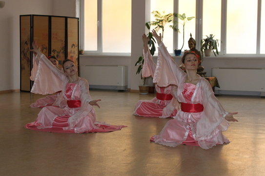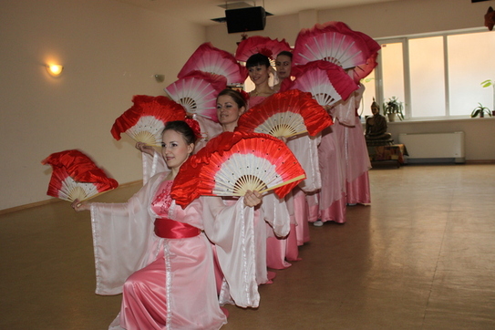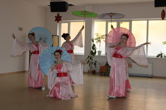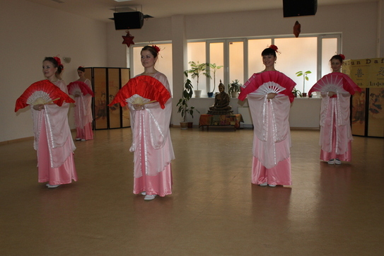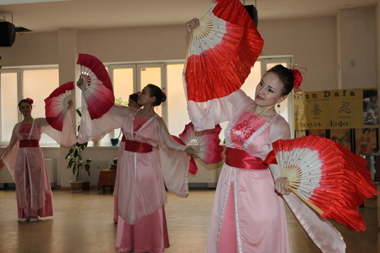 Graţioase, dansatoarele au prezentat 4 dansuri minunate: dansul cu evantaie sau ”Falun Dafa Hao” (ce înseamnă Falun Dafa este bună); ”Dansul florilor de lotus”; ”Dansul cu Umbrelele” şi dansul ”Petalele de Lotus”.