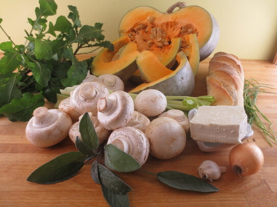Umplutura de dovleac, se combină perfect cu brânza telemea şi surprinde atât prin gustul individual al dovleacului dar şi prin abundenţa de arome de usturoi, salvie şi cimbru.