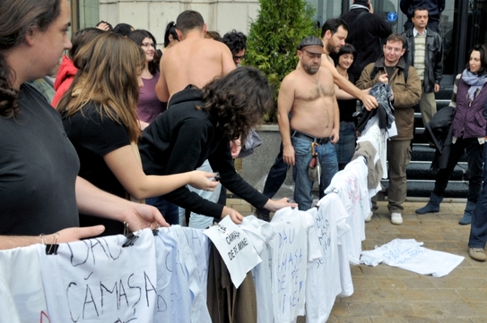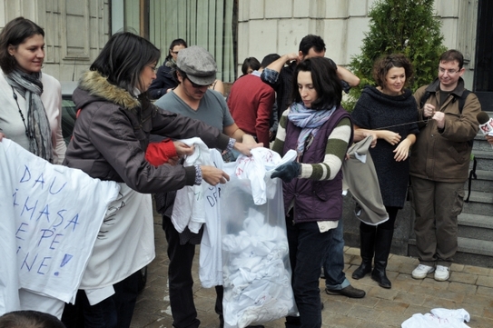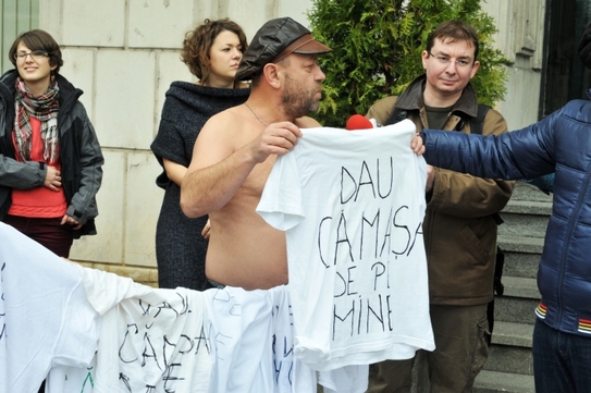 Acţiunea a avut loc în faţa Ministerului Finanţelor Publice, principalul responsabil, în viziunea beneficiarilor fondurilor structurale, de blocarea rambursărilor. Ca un gest simbolic, protestatarii şi-au scos tricourile albe cu care au venit îmbrăcaţi, inscripţionate cu mesajul ”Dau cămaşa de pe mine”, le-au strâns într-un sac, pe care ulterior, l-au predat la Registratura Ministerului Finanţelor, alături de un memoriu pe care l-au numit "Cod roşu de îngheţ al proiectelor europene: iresponsabilitate guvernamentală şi întârzieri foarte mari ale plăţilor!”