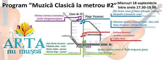 Aşadar, între 16 şi 21 septembrie între orele 17:30 şi 19:00 avem Muzică Clasică la metrou. Pe facebook aflăm că: