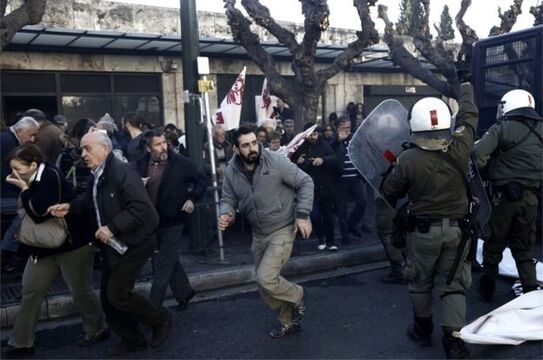 La un moment dat au izbucnit tensiuni, când un grup de manifestanţi a trecut de un cordon poliţienesc şi s-a îndreptat spre biroul lui Tsipras. Poliţia a răspuns cu gaze lacrimogene.