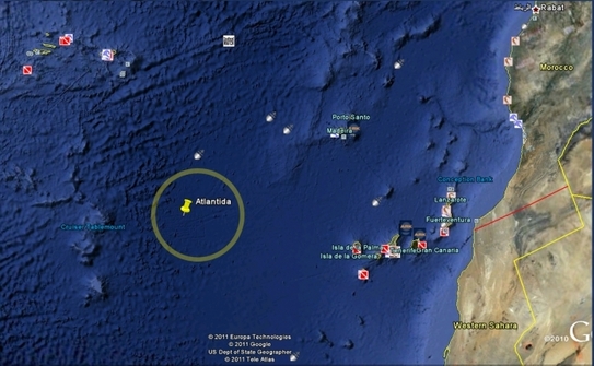 Aceasta uimitoare descoperire a fost facuta la o adancime de aproximativ o mie de metri in regiunea Insulelor Canare, in apropierea coastei africane de nord-vest. Inginerii proiectului Google Ocean au surprins un dreptunghi clar format din intersectia unor linii paralele. Suprafata totala a Atlantidei ar constitui in cazul acesta aproximativ 20.000 de kilometri. Iar adevarata semnificatie a formatiunii gasite urmeaza sa fie inca stabilita de savanti.