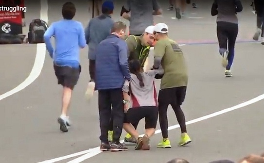 Pe ultima sută de metri, o participantă la maraton era deja sleită de puteri. Cu toate că linia de sosire era extrem de aproape, alergătoarea este pe cale să cadă căci pur şi simplu picioarele păreau să nu o mai asculte din cauza oboselii. Atunci s-a întâmplat ceva minunat: alţi doi alergători, ajungând în dreptul ei şi înţelegându-i situaţia, s-au oprit să o ajute să ajungă la finalul cursei.