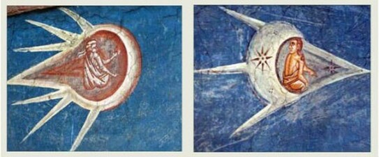 ”Crucificarea”, un tablou din secolul al XIV-lea din Mănăstirea Visoki Decani din Kosovo, include figuri umane în interiorul a ceea ce unii consideră că reprezintă nave spaţiale. Scepticii menţionează personificarea frecventă a soarelui şi a lunii în tablourile din această perioadă; soarele şi luna sunt descrise deseori ca observatori în timpul naşterii lui Iisus, de exemplu. De aceea, în descrieri, unii susţin că obiectele sunt doar soarele şi luna, iar figurile umane din interior sunt mijloace de reprezentare a acestei personificări.