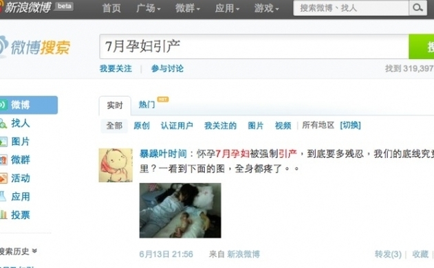 Pe Weibo, în doar câteva zile, au fost lăsate peste 319.000 de mesaje în legătură cu "avortul unei femei gravide în şapte luni".