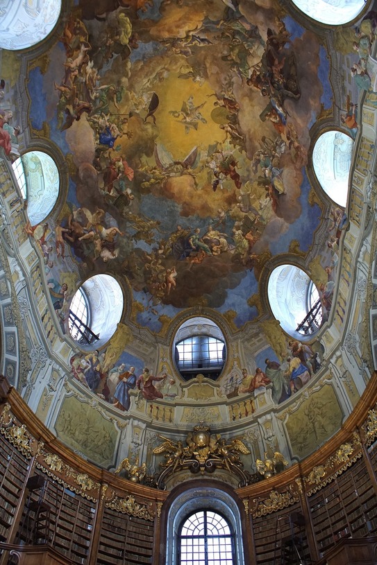 Este, de asemenea, una dintre cele mai spectaculoase biblioteci datorită felului în care este decorată. Domul înfăţişează fresce de Daniel Gran, pictorul Curţii. De asemenea, puteţi vedea statui de marmură, printre alte obiecte decorative. Această bibliotecă găzduieşte peste 8 milioane de cărţi, aproximativ două sute de mii datând din anii 1500 până în 1850 şi posedă o colecţie remarcabilă de scrieri despre reforma lui Martin Luther.