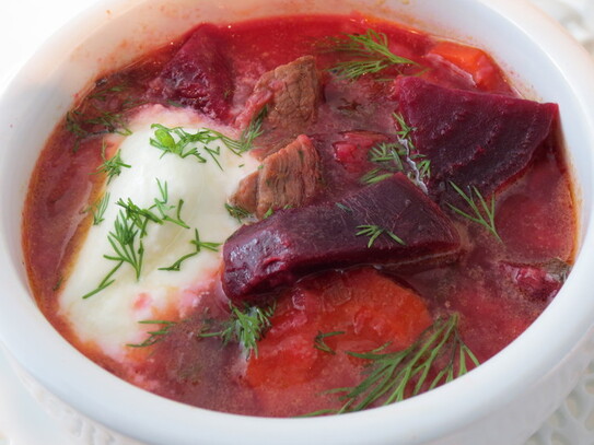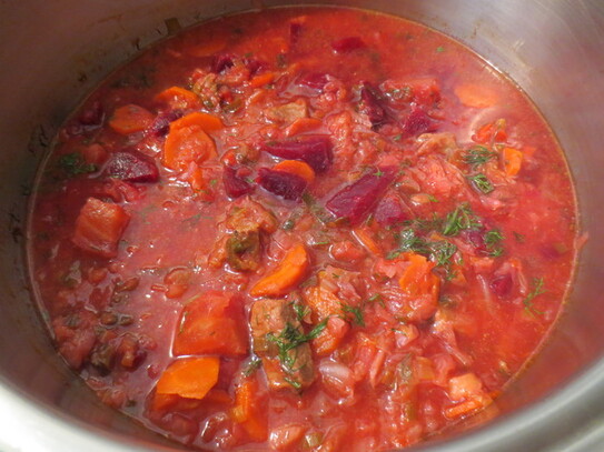 Borş de sfeclă roşie cu carne de vită şi varză
