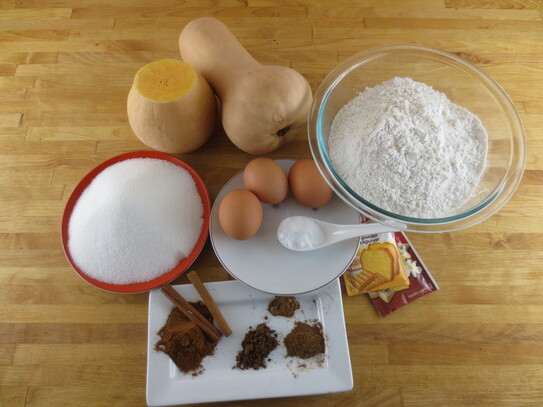 Dacă folosim dovleac proaspăt, se începe mai întâi cu prepararea acestuia. Se împarte dovleacul în jumătate, se curăţa bine de seminţe şi se taie în bucăţi late de 2-3 cm. Se pun într-o tavă cu partea tăiată în jos. Se acoperă cu folie de aluminiu şi se coace în cuptorul preîncălzit până când pulpa se înmoaie, aproximativ 60 de minute. Se scoate pulpa de dovleac şi zdrobeşte bine cu o furculiţă sau în blender. Se măsoară 2 căni de pastă de dovleac şi se pun deoparte.