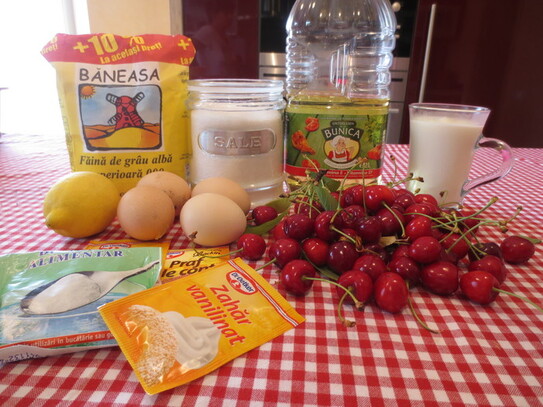 Se coc 6 brioşe mari sau 12 brioşe mici. În lipsa tăvii de brioşe, se poate coace o tartă cu cireşe în tavă de diametrul de 23 cm, vreme de 35-40 minute, până când tarta devine maro aurie pe deasupra.