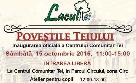 Odată cu inaugurarea Centrului Comunitar, va fi lansat şi proiectul "Poveştile Teiului", realizat cu sprijinul ARCUB, un proiect cultural produs în cadrul liniei Generator de proiecte comunitare la firul ierbii, în cadrul candidaturii Bucureşti 2021_Oraşul In-Vizibil, informează organizatorii.