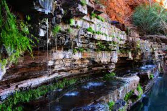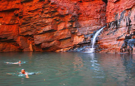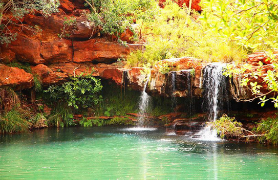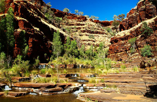În Parcul Naţional Karijini unde, de peste două miliarde de ani, pământul este sfărâmat şi transformat, se percepe măreţia naturii. Situat în Pilbara, o regiune foarte uscată, Karijini este asemănat cu o oază în mijlocul deşertului. Cheile, cascadele şi piscinele sale naturale fac ca acest parc să fie visul oricărui vizitator, dar şi una dintre cele mai importante atracţii turistice. Sub cerul albastru şi senin peisajului roşu dantelat oferă adăpost unei abundente vegetaţii autohtone, animalelor şi păsărilor.