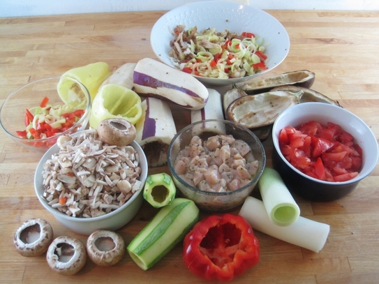 Va prezentăm o reţetă pentru o caserolă cu legume asortate cu trei feluri de umpluturi: cubuleţe din piept de pui marinat, umplutură de legume şi de ciuperci. Este o reţetă versatilă, fie pentru un prânz sau o cină în familie, fie când aveţi invitaţi sau organizaţi o petrecere.