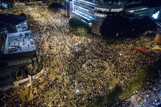 Centrul Admiralty este localizat vizavi de sediul guvernului din Hong Kong şi a găzduit în ultimele zile peste 60.000 de cetăţeni care au sprijinit protestele studenţeşti de duminică. Protestatarii care stăteau pe podul din apropierea Centrului Admiralty au fost auziţi strigând ”Jos Partidul Comunist Chinez. [Directorul executiv al Hong Kong-lui] Leung Chun-ying demisionează!”.