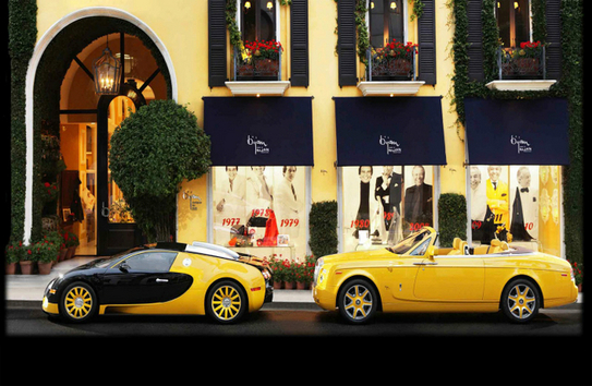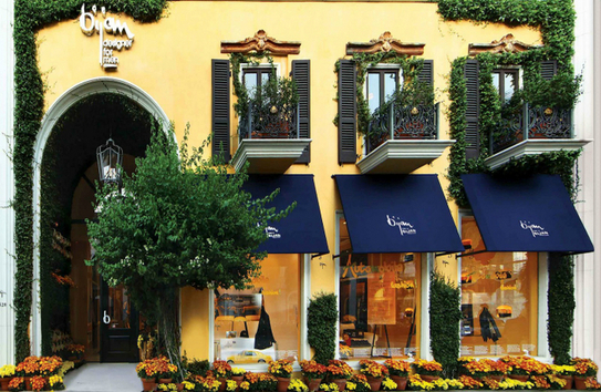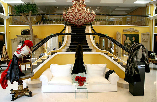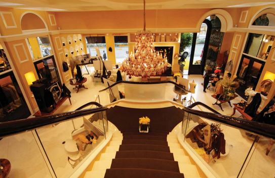 Podele de marmură, lemn fin şi un candelabru de cristal decorează acest spaţiu pompos din Los Angeles, care combină în produsele sale calitate, excelenţă, strălucire şi exclusivitate. O pereche de şosete simple poate costa peste 90 de euro, în timp ce un costum depăşeşte 20.000 de euro.