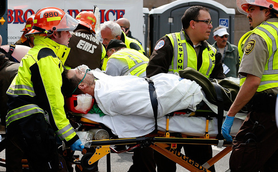 Spectatorii plini de sânge au fost transportaţi în corturile medicale ridicate pentru a acorda îngrijire alergătorilor obosiţi. Poliţia şi-a făcut loc printre competitori în timp ce aceştia au fugit în direcţie inversă liniei de sosire după explozii.