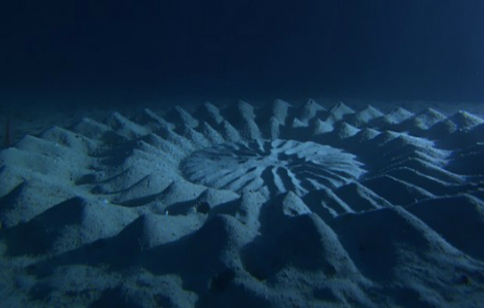 Acest video arată recenta descoperire incredibilă a fotografului, pe insulele Ryukyu (Okinawa). În timpul unei scufundări, Ookata a observat ceva ce nu a mai văzuse până acum: un val de nisip, un model geometric de aproape şase metri în diametru situat pe fundul mării, la aproximativ 80 de metri sub nivelul mării.