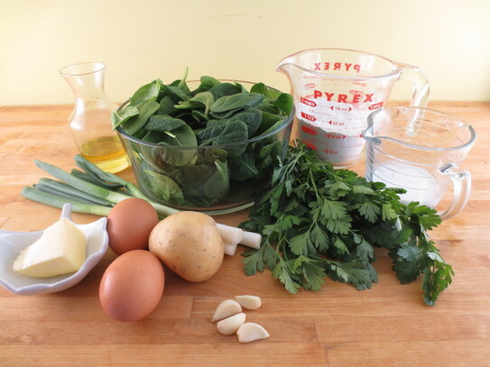 Spanacul sau leurda se spală în mai multe ape, se lasă să se scurgă bine de apă, apoi se taie în bucăţi mari de până la 2 cm grosime.