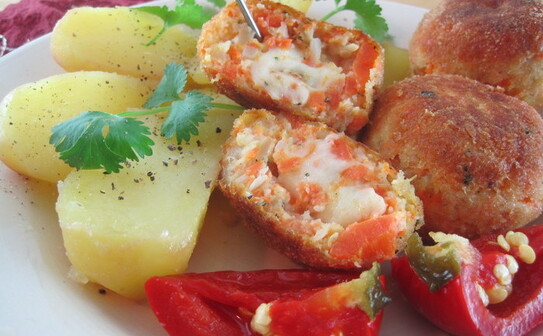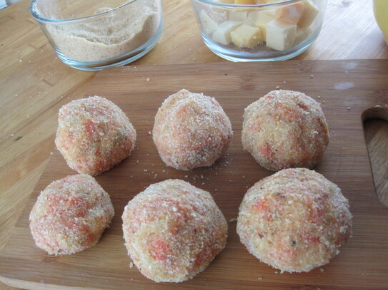 Din pasta obţinută se fac mici sfere în mijlocul cărora se pune câte un cubuleţ de brânză. Se dau prin pesmet şi se prăjesc în ulei.